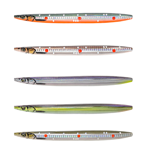 We have carefully studied the swimming action and behavior of the sandeel in order to tweak this lure and the result is incredible. The 3D LT Sandeel swims with a seducing and slim s-curve with its head slightly up. On the spin-stop the lure flutters and rolls backwards like a sandeel fleeing and trying to dig itself into the sand. On the twitch the lure will dart erratically and flash in an incredibly lifelike fashion. The body is made of super strong ABS and has incredible details. The unique inside spear ensures very long casting distances, even in windy conditions. The Line Thru system makes for perfect presentation and ensures that the predator fish cannot use the weight of the lure to throw the hook. We recommend the use of soft fluorocarbon or Finezze mono line as trace.